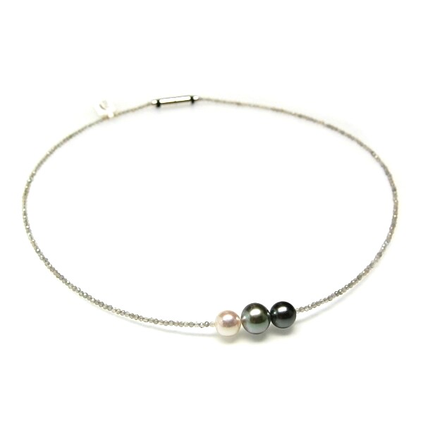 Collier ZP Akoya Tahiti rd. / Labradorit / 585 WG Mag. Zyl. 45cm
